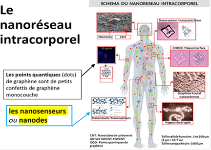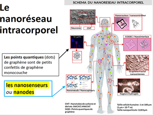 1) Les nano particules sont des circuits qui tissent des réseaux filaires et sans fil dans le corps et le cerveau.