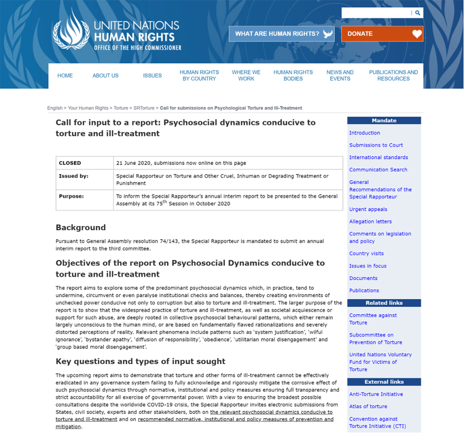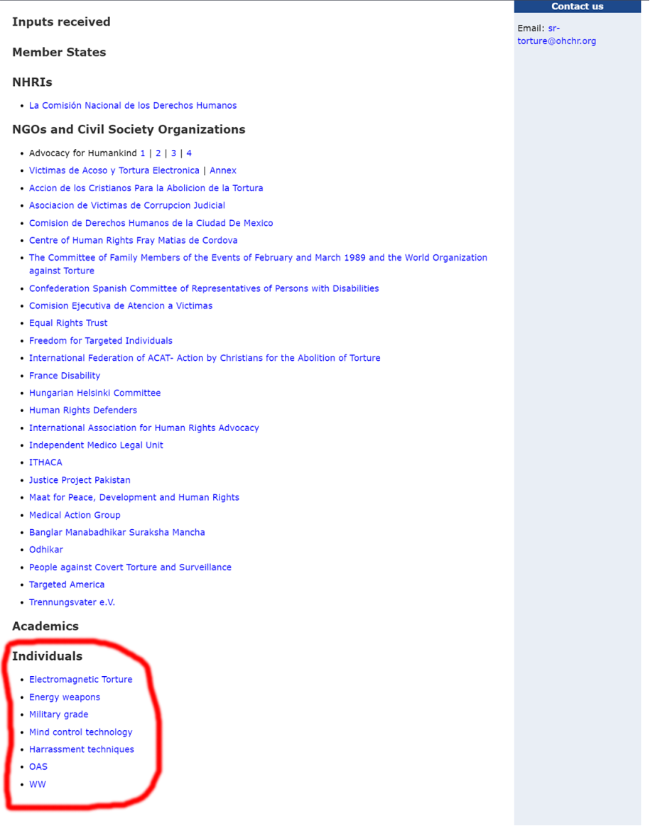 2) La 2ème réponse se trouve dans la consultation préliminaire de l’ONU sur la torture de Juin 2020 et sur les 1ers témoignages de victimes de ciblages par armes électromagnétiques. Page 25