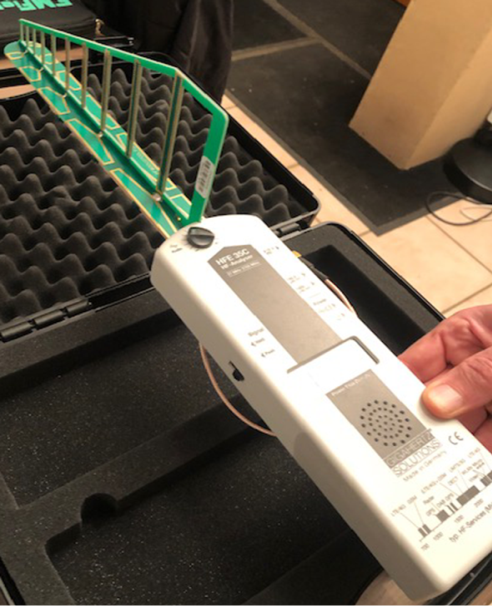 Gigahertz Solutions HFE35C (mesure intensités et directions des champs électromagnétiques de basses fréquences de 27 MHz à 2,7 GHz) : https://tinyurl.com/ra895uz5