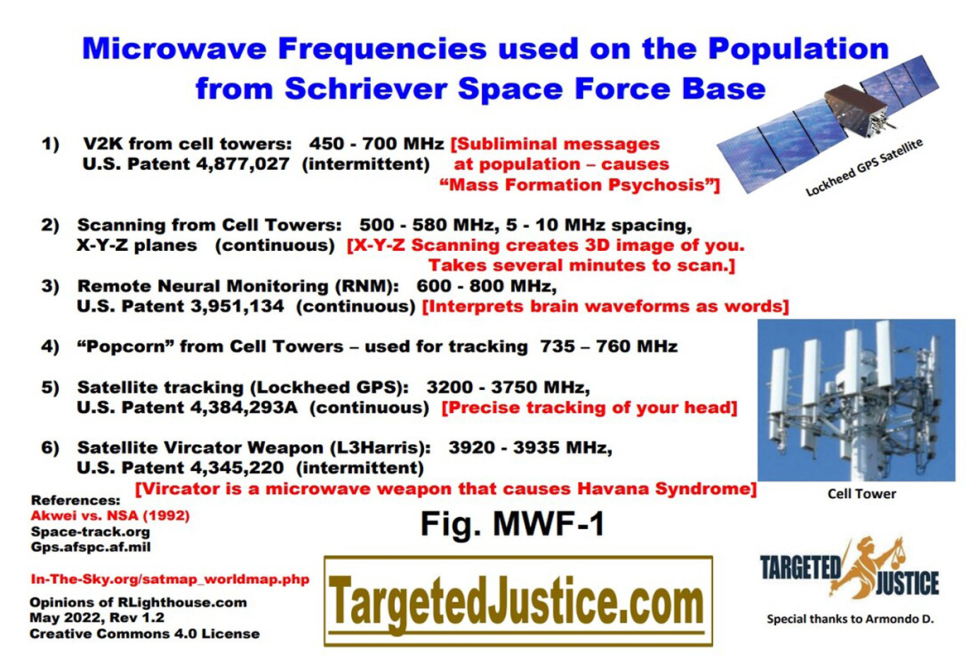 9/ Fréquences micro-ondes et brevets utilisés sur la population à partir de la base « Schriever » de l’US Air Force dans le Colorado :